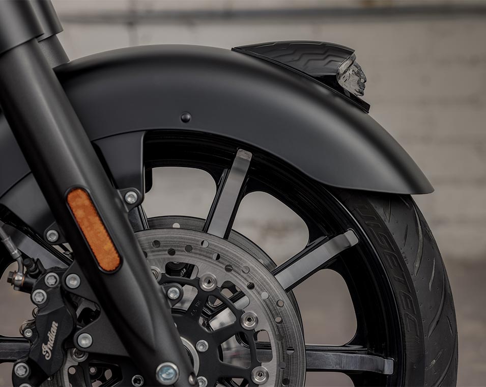 S’inspirant du look des motos customisées, le garde-boue avant avec sa coiffe d’Indien iconique met en valeur la jante à batons de 19 pouces.