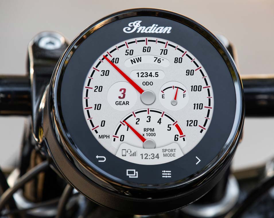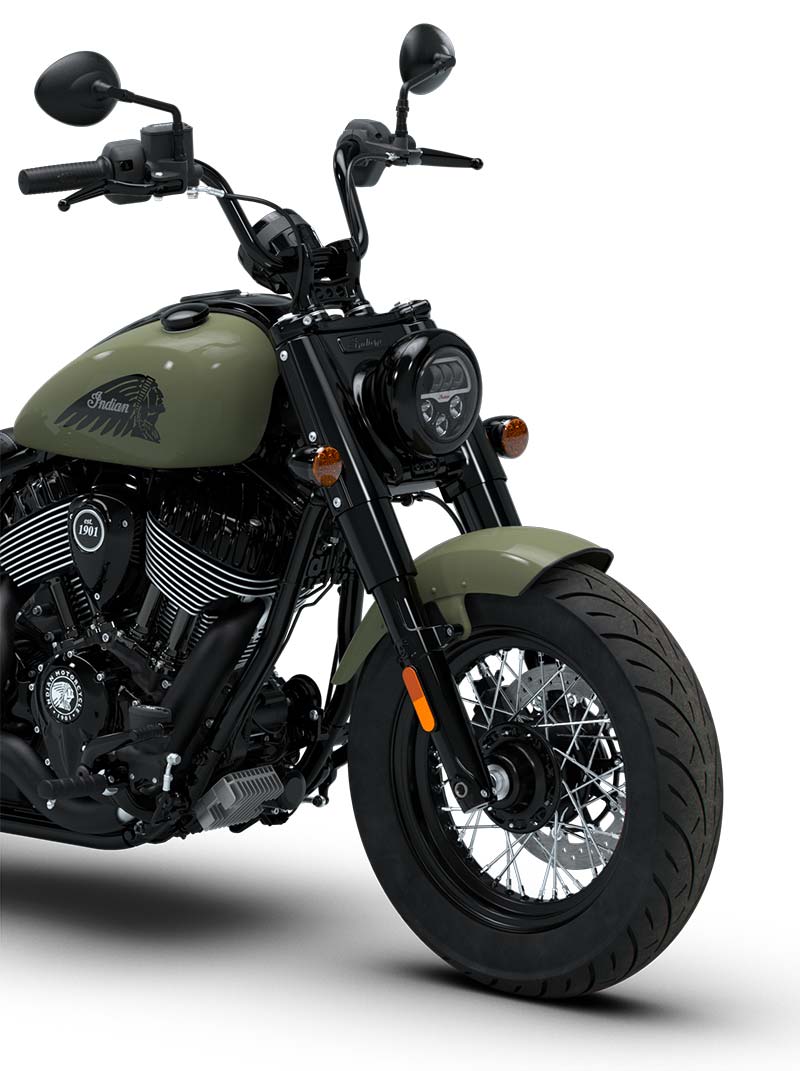 Hors de question pour une Chief Bobber Dark Horse de quitter nos chaînes d’assemblage sans être préalablement équipée de série avec la fonction de démarrage sans clé, le port de chargement USB, les modes de conduite, l’ABS, l’éclairage LED et, enfin, des pneus Metzeler Cruisetec. Il n'en faut pas moins pour profiter de déplacements toujours plus agréables, avec une commodité, une sécurité et des performances exceptionnelles.