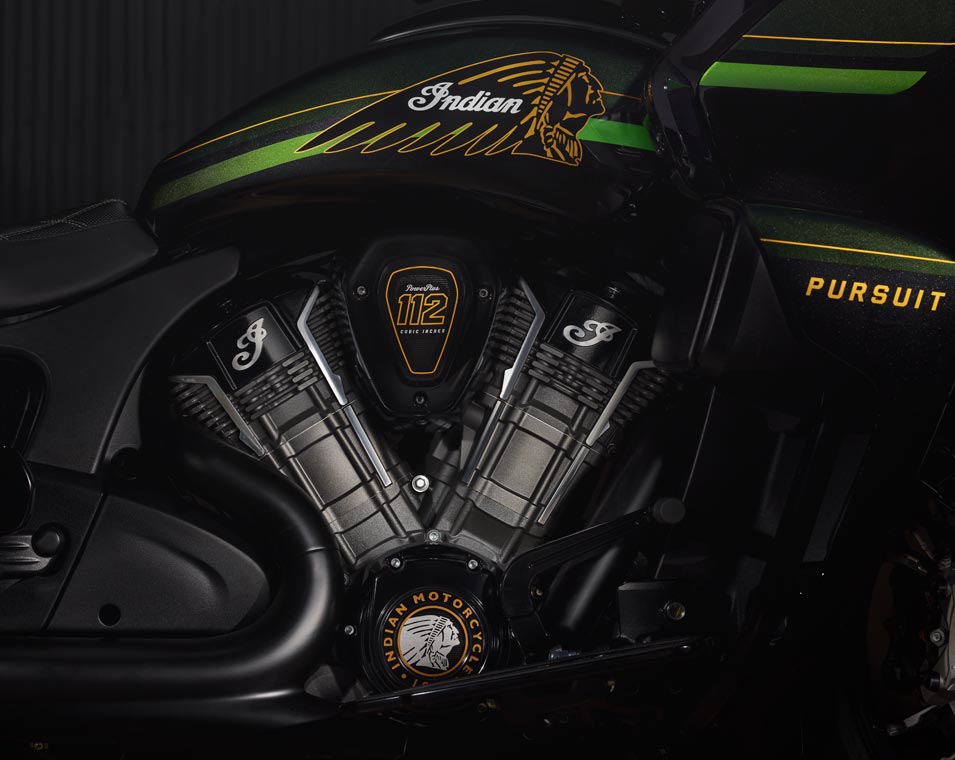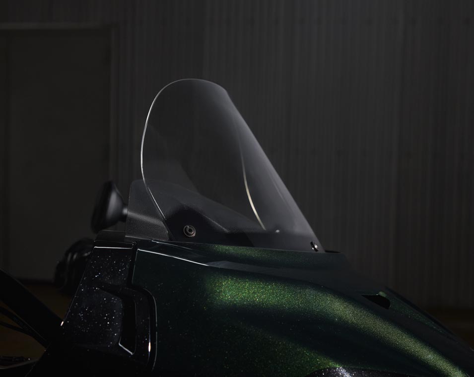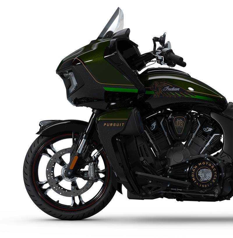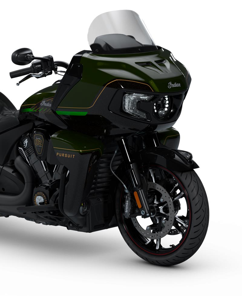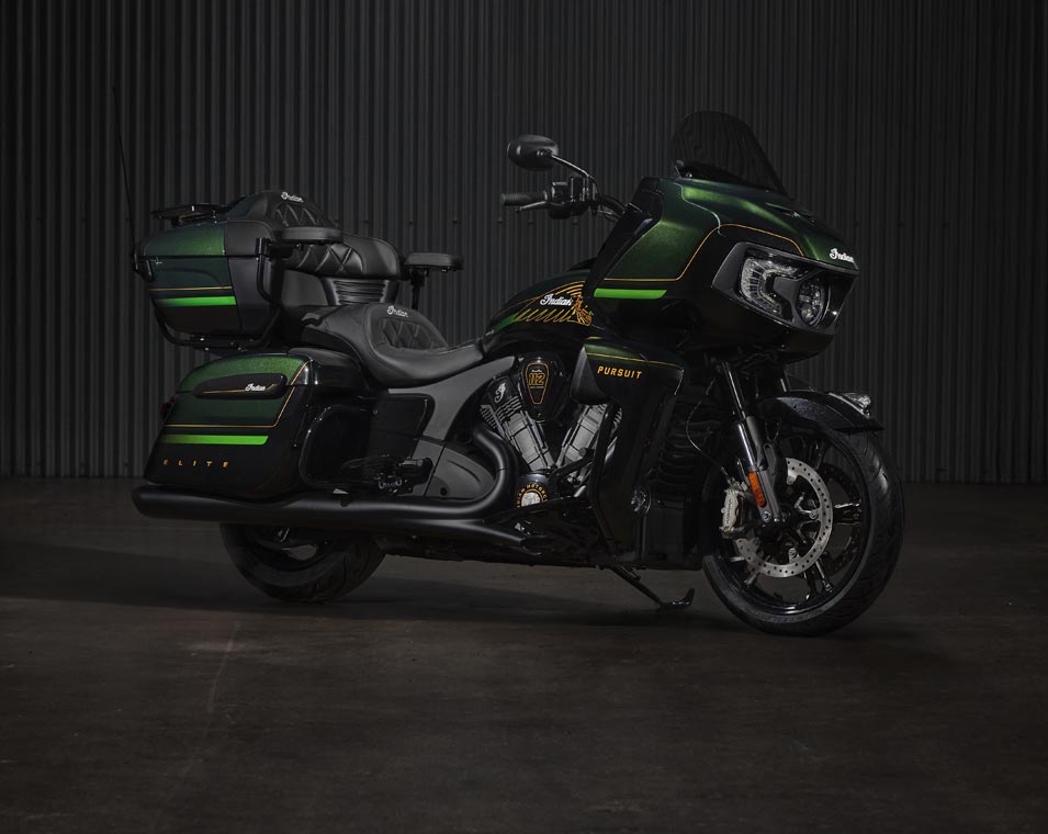 | Equipements Standard | Sacoches rigides verrouillables à distance, pare-brise à réglage électrique, plus de 140 litres de rangement, allumage sans clé, aérateurs de carénage réglables, chargeur USB, système de contrôle de la pression des pneus (TPMS), plateaux repose-pieds pilote et passager, selles chauffantes à surpiqûres de couleur verte, commodos rétroéclairés avec poignées chauffantes et accoudoirs pour le passager. |