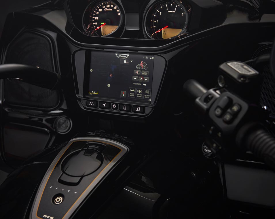 L'unité de télécommunications RIDE COMMAND+ installée en usine pour un an GRATUIT fournit une navigation GPS virage par virage, des superpositions de météo et de trafic en direct, Apple CarPlay®, Bike Health, Bike Locator, une recherche de destination intuitive, et plus encore. |